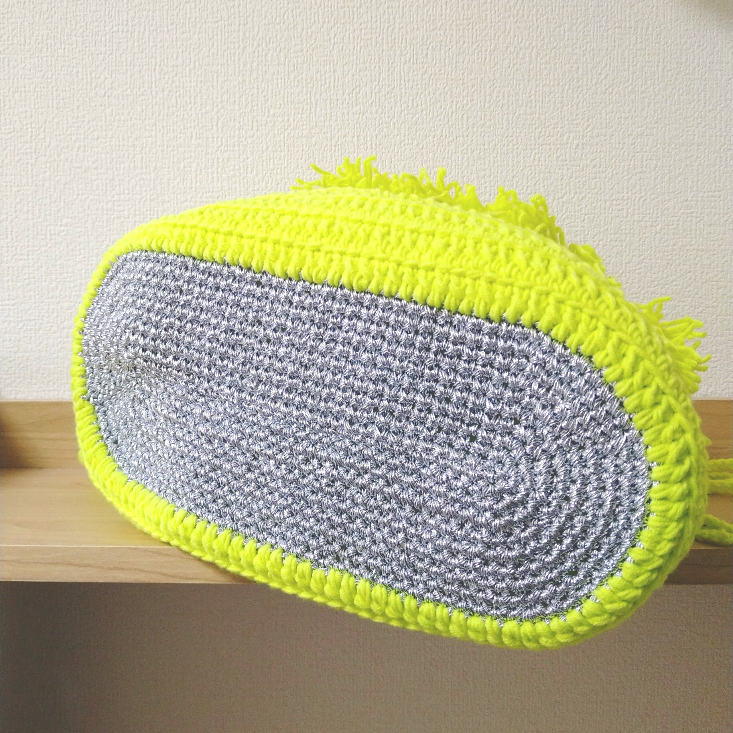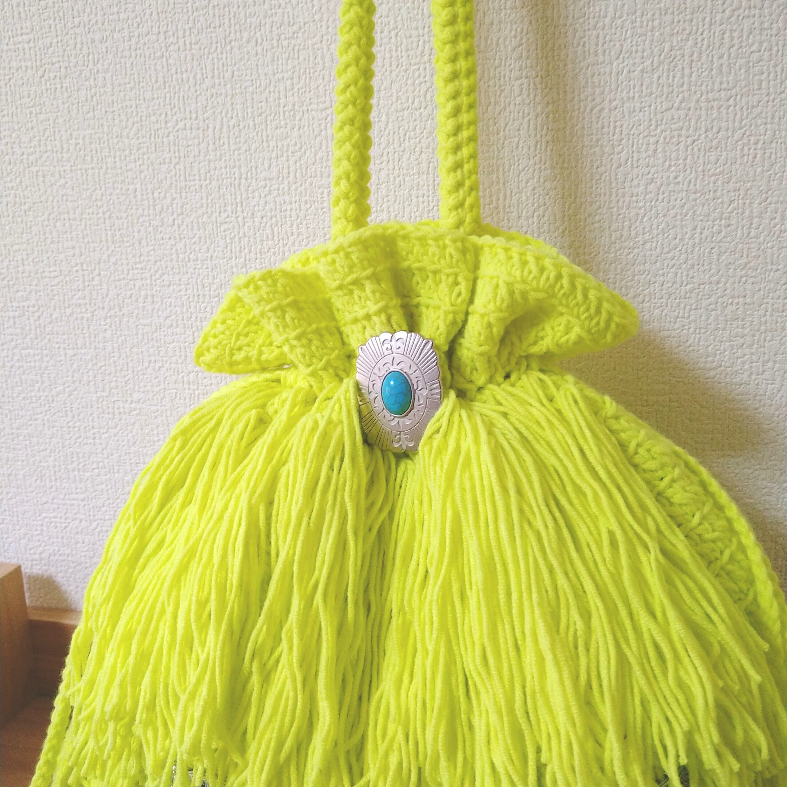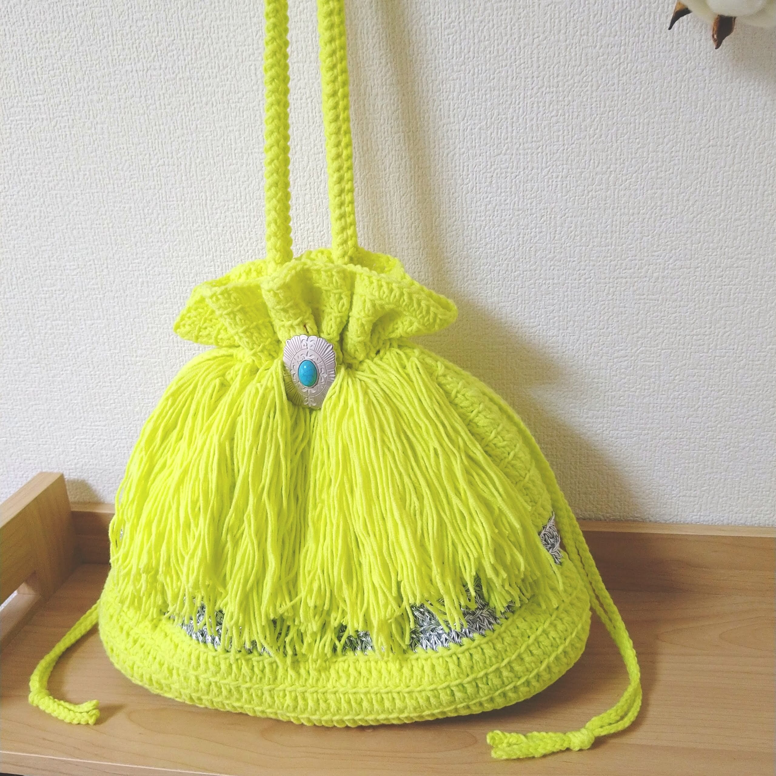 ネオンカラーとメタリックシルバーの組み合わせが最高にかっこいい巾着バッグです