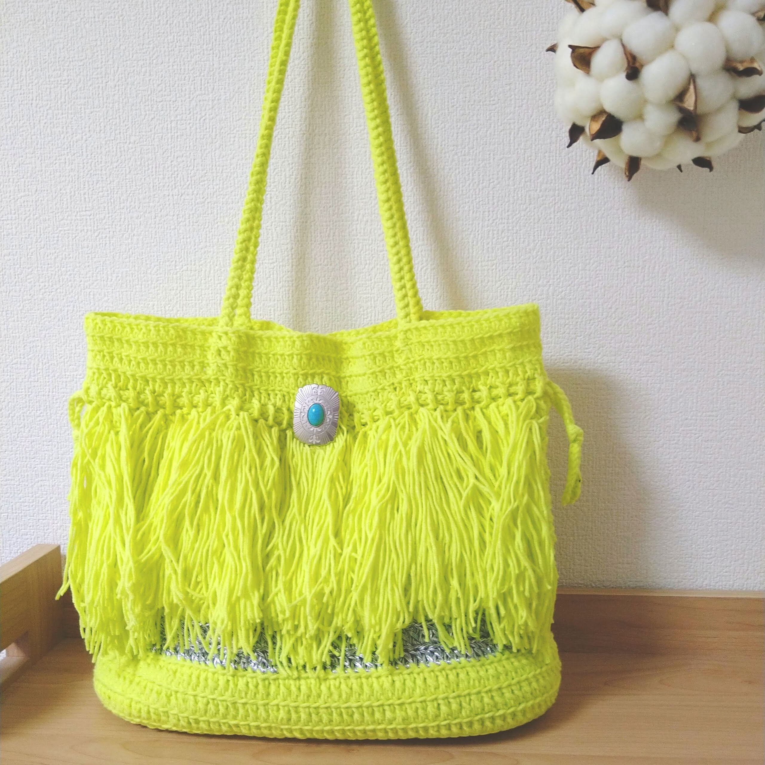 持ち手が長いので肩掛けしていただくと小脇にネオンカラーが来るので派手ですが